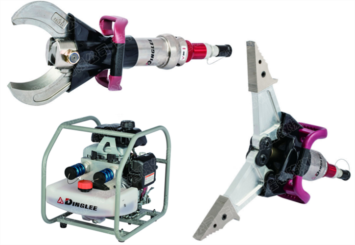 一、技术特点 具有设计稳定,可靠、重量轻、扩张力/剪断力强以及扩张距离大等特点。二、适用范围 铁路,公路和水上事故的重型救援操作,灾害后恢复和搜救。使金属结构变形,在金属上打孔等。剪切金属构件,管道、异型碳钢和钢板等。三、设备组成 设备主要由液压泵站、扩展器、剪断器、高压油管等组成。四、技术参数型 号:FX—LUKAS液压泵站:发动机:四冲程汽油发动机 2.6kW、低/高压流量(L/min) 2×2.65-2×0.82、液压油箱容量(L) 7.5、可用液压油量(L) 6.3、 外形尺寸(mm) 380×440×478、 重量(kg) 35。扩展器:扩张力(kN) 256、 扩张距离(mm) 720、 挤压力(用胶管附件)(kN) 122、 牵拉距离(mm) 622、 牵拉力 (kN) 51、 液压油量(L) 0.243、 外形尺寸(mm) 790×300×180、 重量(kN) 19.6。剪断器:剪断力(kN) 510、 剪切圆钢直径(mm) 33、 开口距离(mm) 225、 液压油量(L) 0.098、 外形尺寸(mm) 726×225×163、 重量(kg) 14.6。标准配置:液压机动泵站1台扩张器1台剪断器1台高压油管4根